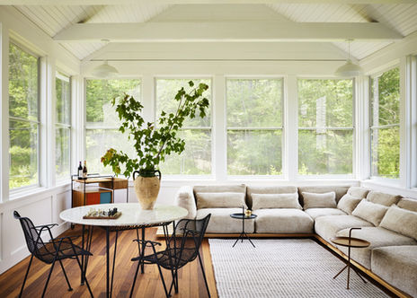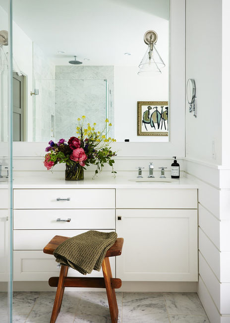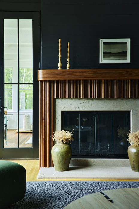 The house was bright white – inside and out – with large windows, and we made it more inviting and intimate by adding dark and matte colors and soft textures. The design is also an ode to nature and the beautiful countryside location: the custom fireplace surround was inspired by the tall woods behind the house, the powder room wallpaper features rolling scenic design of a wilderness reserve, and we took full advantage of the home’s proximity to vintage shops, makers, and artists in the Hudson Valley and Washington, DC, where the client lives year-round.