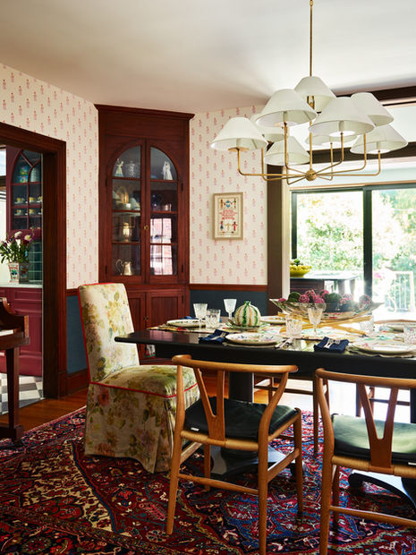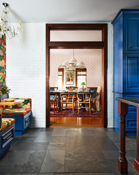 This 1930s Colonial in Northwest Washington presents the unusually rich realization of a modern addition with the character and mood of an older, European home. The project included a dramatic expansion of the kitchen and created a new owners’ suite. We chose lush, dark colors throughout the house to evoke the owners’ love for England.